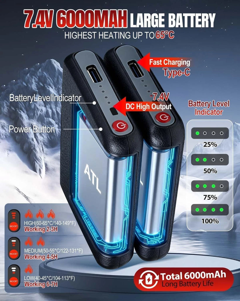 Rechargeable 6000mAh Battery Electric Heated Gloves Motorcycle Waterproof