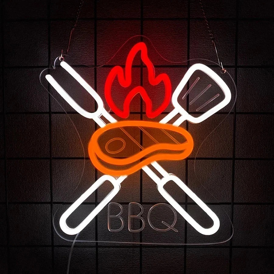 BBQ Neon Led Home Bar Sign Man Cave Outdoor Kitchen Fathers Day Gift
