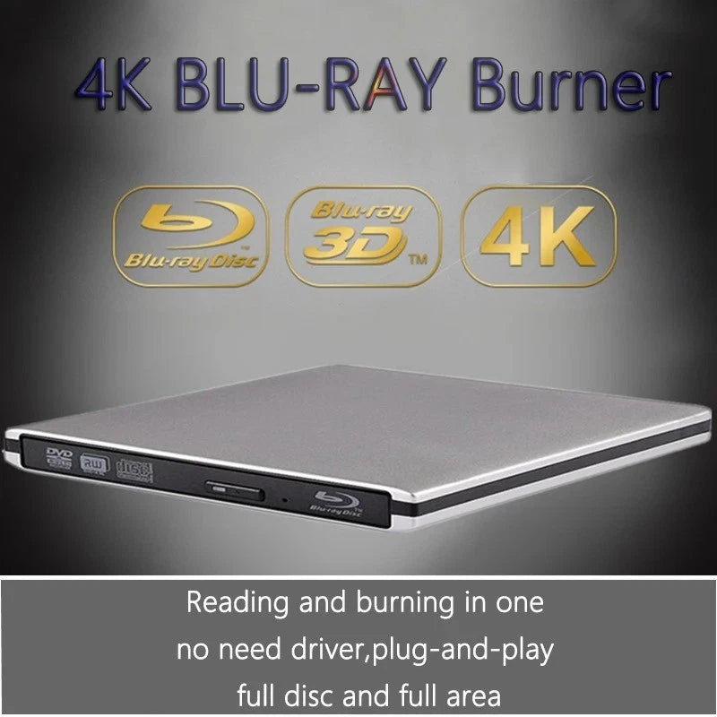 UHD 4K Blu-Ray Burner External USB 3.0 Super Slim DVD BD Recorder Drive PC / MAC