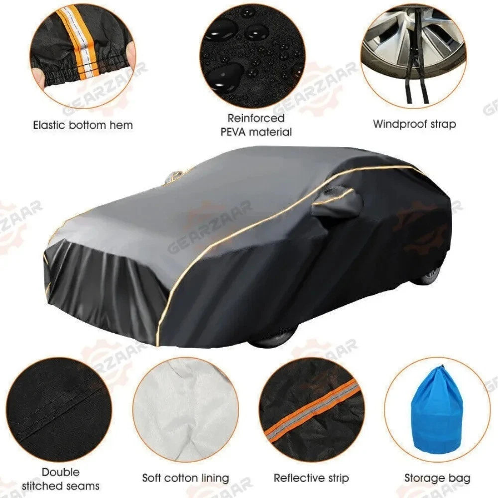 Waterproof 6 Layer Car Cover Heavy Duty Cotton Lined UV Protection - Size Large